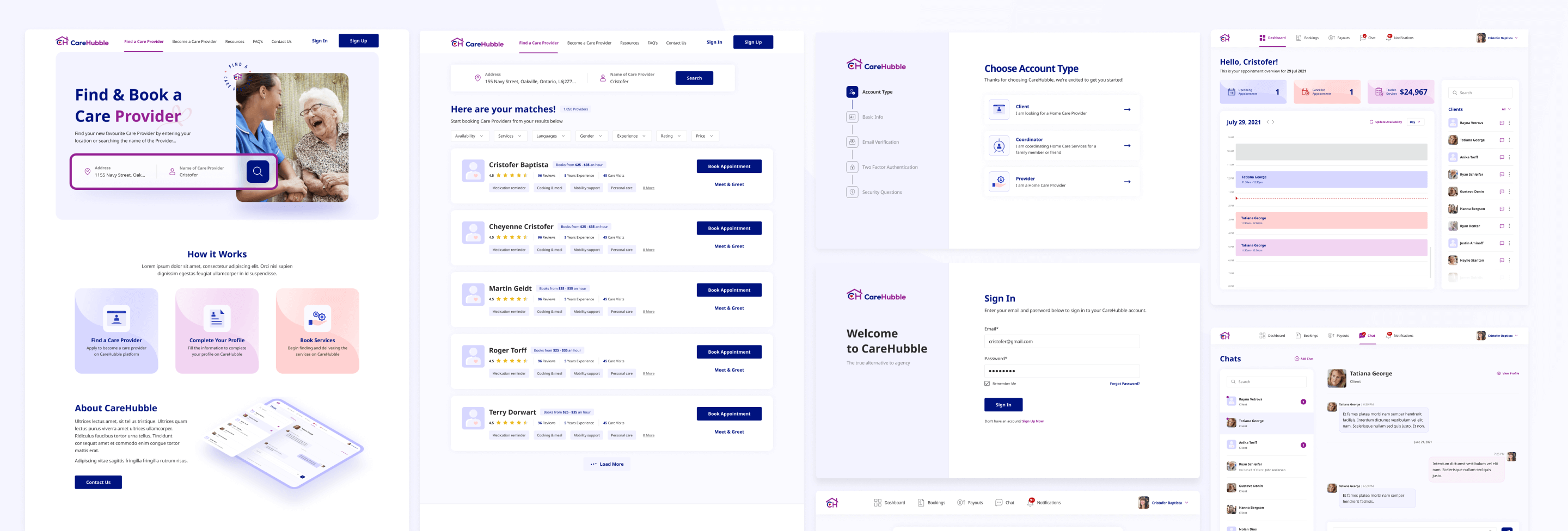 CareHubble is an online platform where clients may search and schedule qualified home care providers. The platform enables secure communication & transactions between clients and providers, compliant storage of client health & payment information, and provider account deposit information.