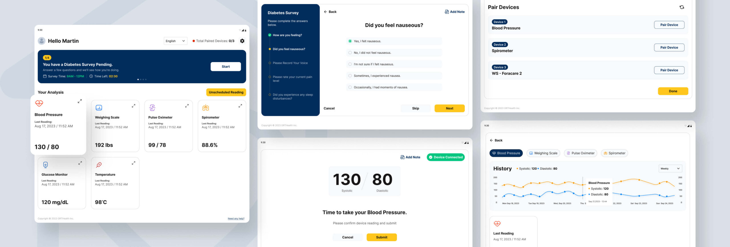 GRTHealth™ envisions a world in which remote health care is effortless and intuitive. This vision is brought to life with their Home Health Hub™, an innovative Android application that empowers patients to monitor their vital signs at home. The app seamlessly transmits data to caregivers, reducing the burden on both patients and the healthcare system while revolutionizing overall healthcare delivery.